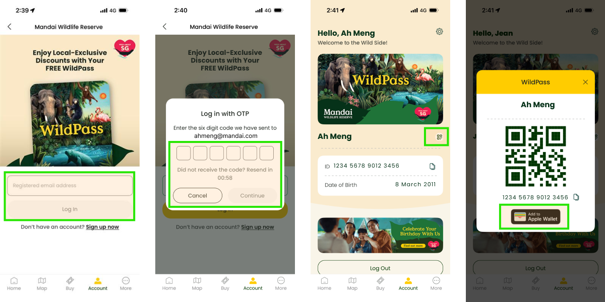 To enjoy WildPass discounts at F&B and Retail outlets, follow these steps on the Mandai app: