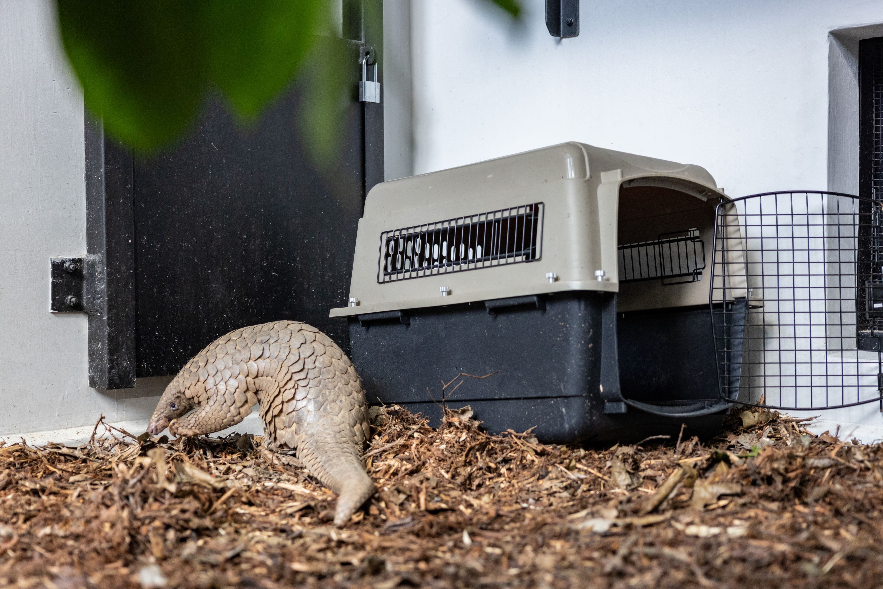 Berani the Sunda pangolin takes his very first few steps around the new off-exhibit den area at Pangolin Trail. The animal care team worked to ensure that the animals settled in well through positive reinforcement and a conditioning process that took place over three weeks.