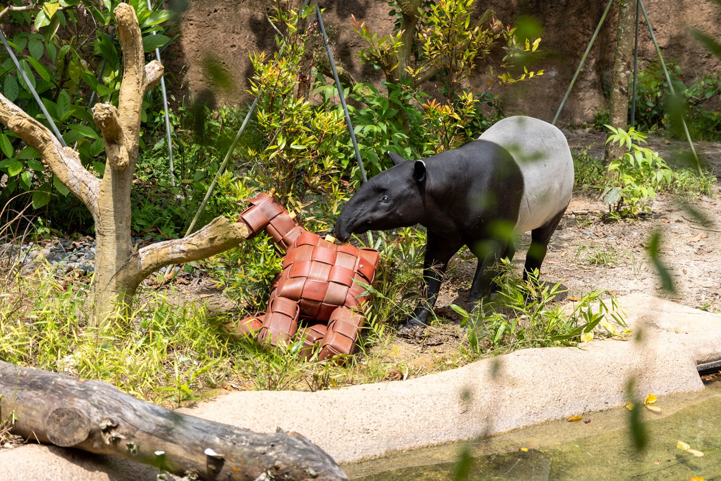 Image 3: Spot the striking Malayan tapir with its distinctive black and white coloured pattern at Rainforest Wild Asia’s Watering Hole as it enjoys Lunar New Year goodies shaped like a horse! Photo credit: Mandai Wildlife Group