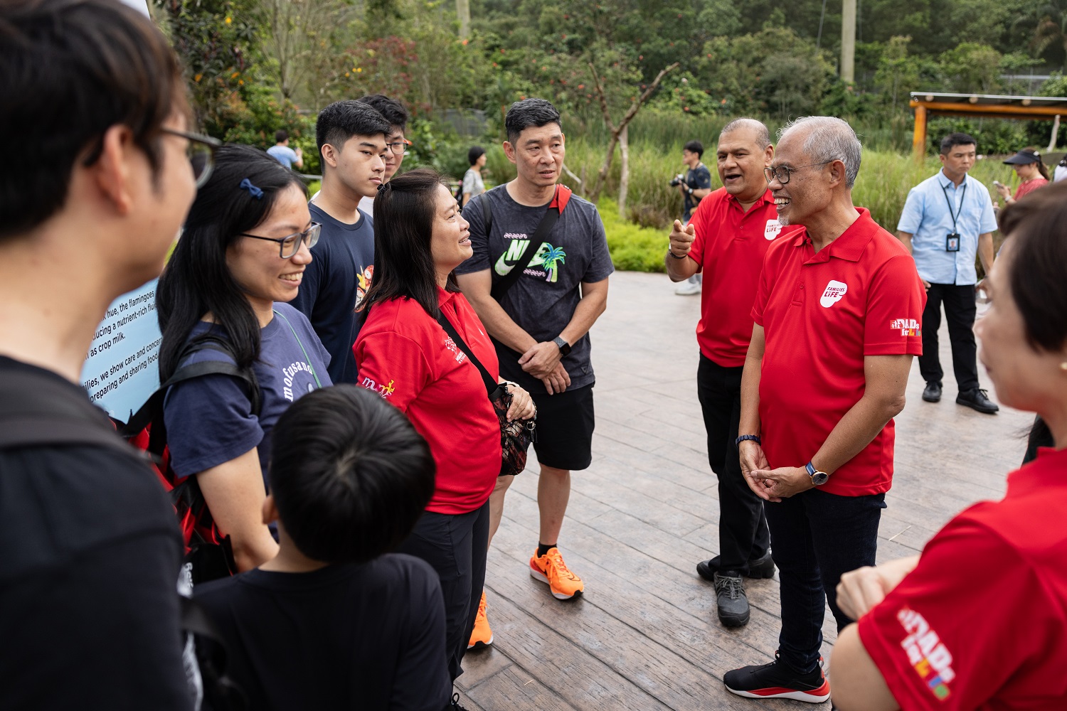 Mr Masagos Zulkifli, Minister for Social and Family Development and Second Minister for Health greets a multi-generational family at Bird Paradise.