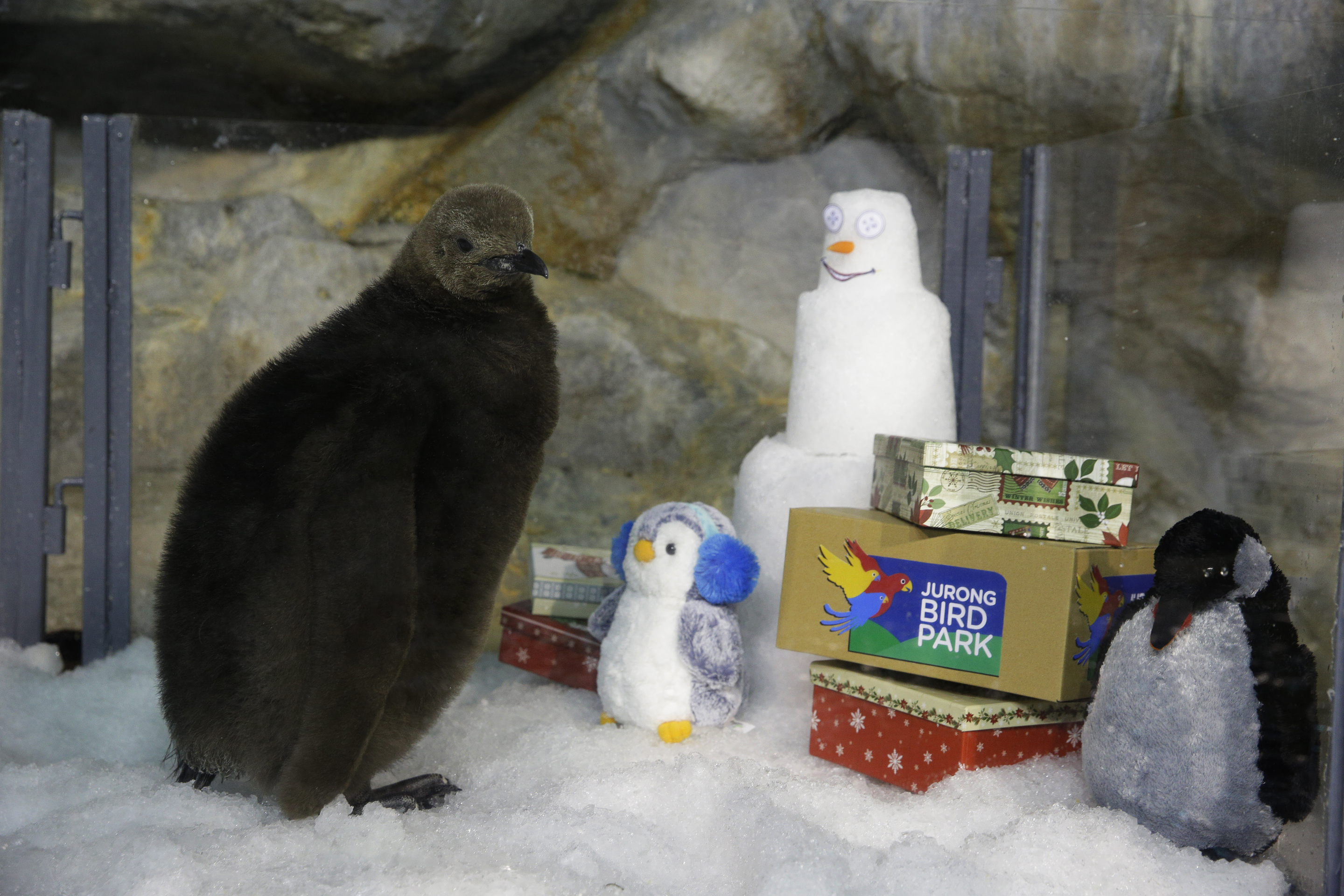 Maru the king penguin chick receives a myriad of Christmas goodies while being introduced to the rest of its family. Maru is the first successful king penguin chick to be hatched in almost a decade in Jurong Bird Park.