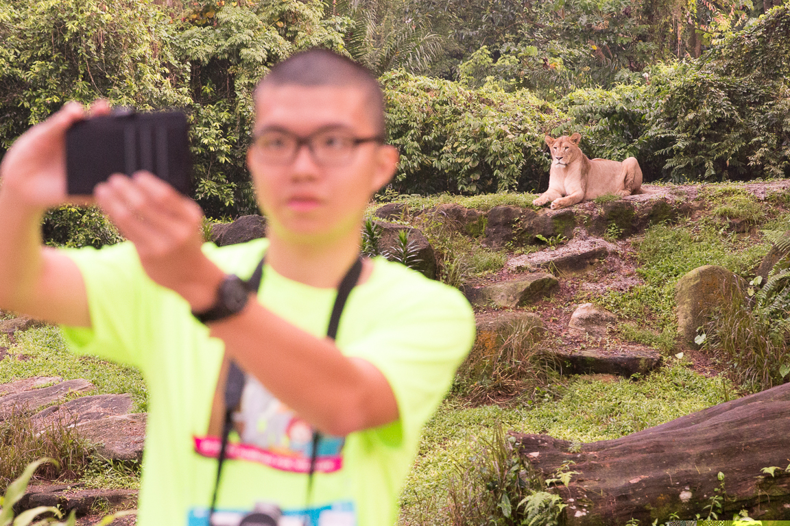 A Safari Zoo Run participant taking a selfie as a lioness lounges in the background, at Singapore Zoo. This is the tenth instalment of the wildly popular run.