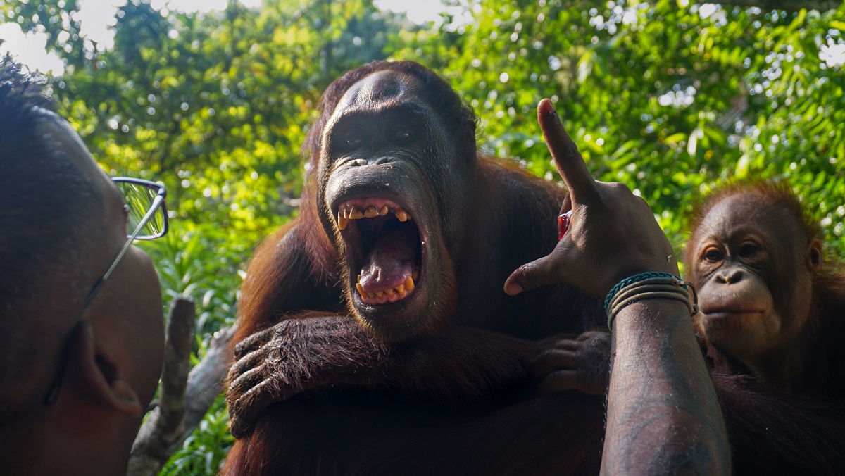 Kumaran Sesshe, Head Keeper of Great Apes, Singapore Zoo, checks Binte the female orangutan’s teeth by giving her a cue to open her mouth. Training animals to open their mouths voluntarily and on cue allows for a stress-free way for keepers to check their animals’ dental health on a regular basis