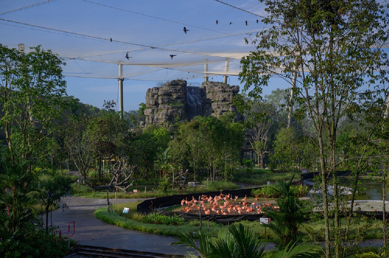 Over 40 species of birds now call the Hong Leong Foundation Crimson Wetlands home. The multi-species habitat houses 20 species of parrots including the Hyacinth Macaw, Scarlet Macaw and Blue-throated Macaw, alongside the American Flamingos, Scarlet Ibises and Roseate Spoonbills.