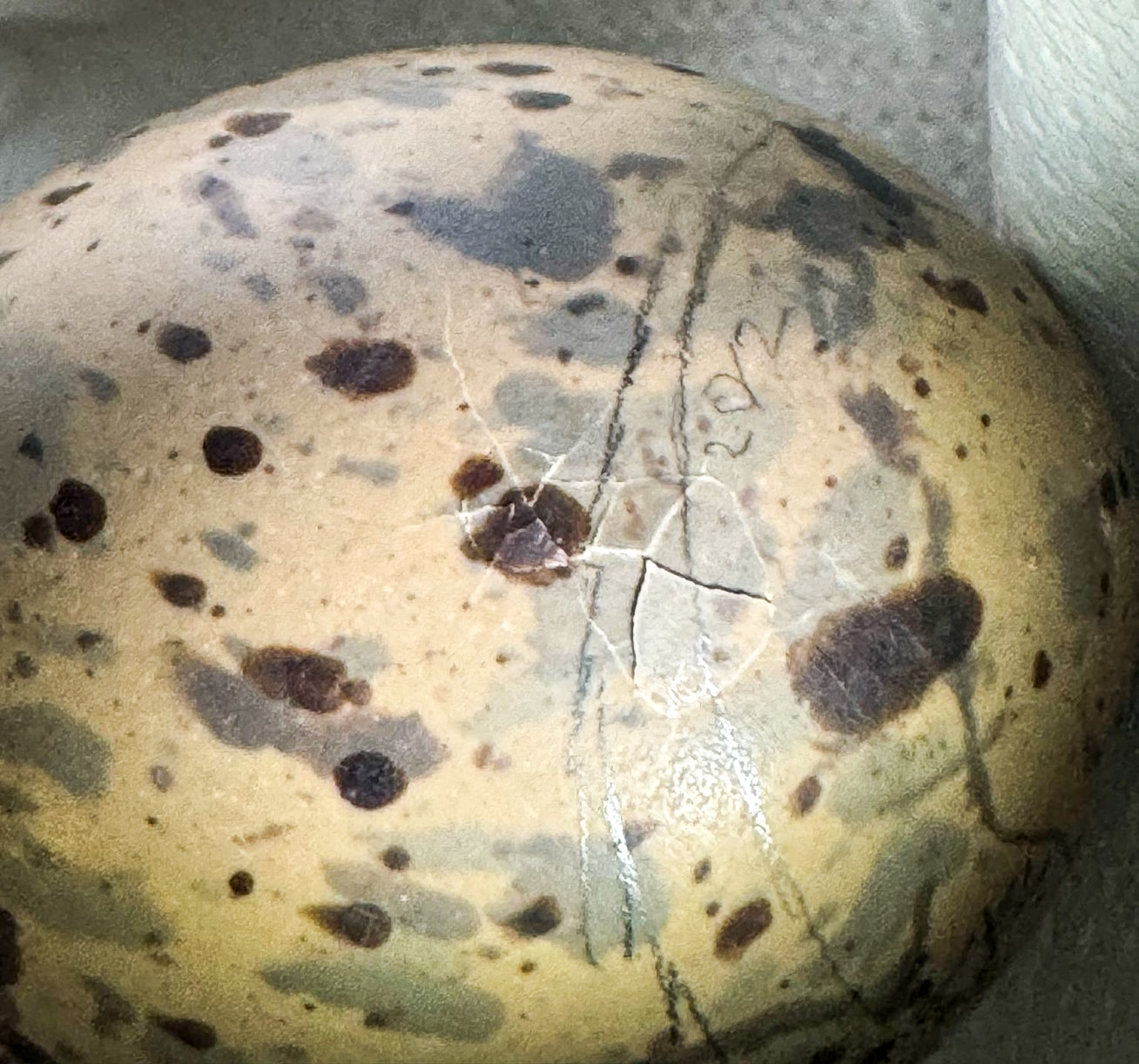 Keepers recorded daily changes in the egg’s air cell, an indicator of the hatching process. They noted dates directly on the shell.