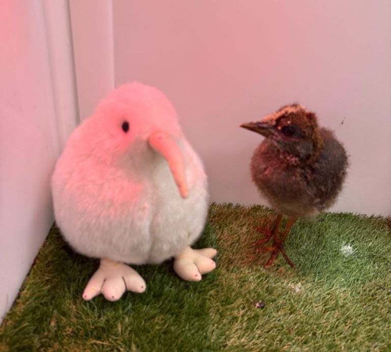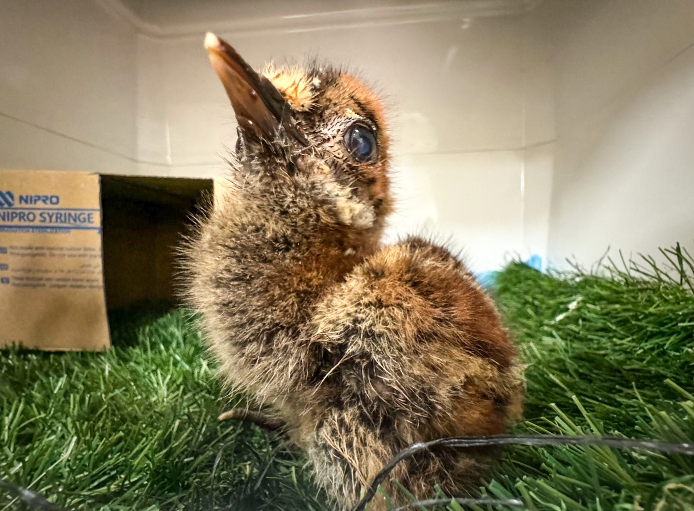 As the park’s first kagu chick, its care required flexibility and resourcefulness. Keepers adapted by finding suitable dietary substitutes, modifying nesting equipment, and making other adjustments to ensure the chick’s comfort and well-being. To help the chick feel secure, keepers placed a cardboard box in its brooder to provide a cosy retreat, as kagus are naturally shy birds. They also introduced a plush toy to offer comfort and simulate the presence of its parents.