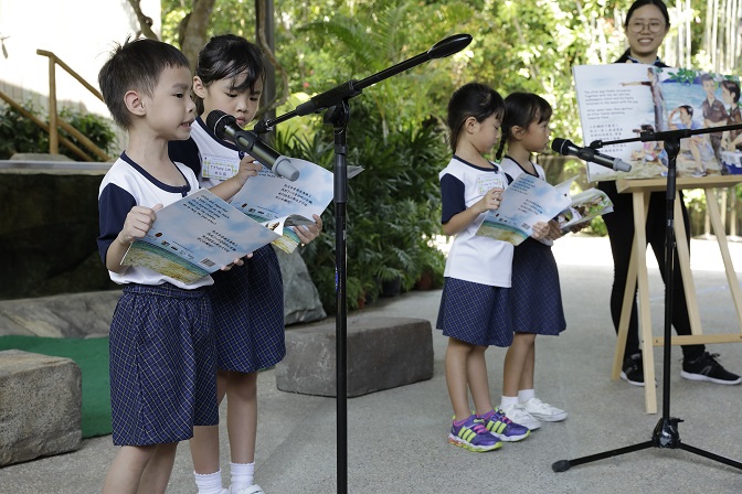 The students also conducted a book reading of “Little Otter, Litter Trouble” to a public audience of approximately 100 people, sharing the tale of a little otter trapped by a discarded fishing net, and how a pair of young siblings work to save it. Written in English and Chinese, the book was published by WRS’ Education department with support by Lee Kuan Yew Fund for Bilingualism to encourage