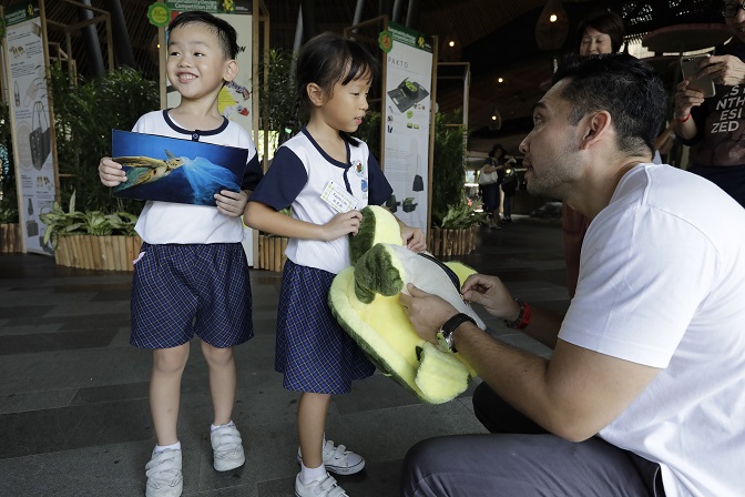 As part of WRS’ Go Green for Wildlife campaign which this year focuses on fighting plastic waste, 29 six-year-old Eco-rangers from Canossaville Preschool bravely manned River Safari’s sustainability booth and used props and animal specimens to spread the word to park guests about the harmful effects of plastic waste on wildlife such as aquatic birds, otters and sea turtles. They also shared key actions that the public can take to reduce single-use plastic usage: