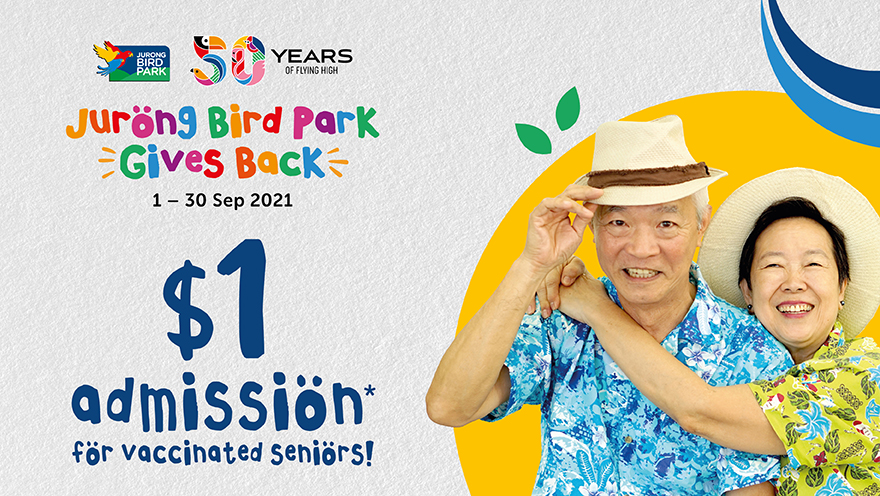$1 Admission for Vaccinated Seniors Visit Jurong Bird Park for a fun day out in with your family and grandchildren! All vaccinated seniors* enjoy $1 admission to the park throughout the month of September.
