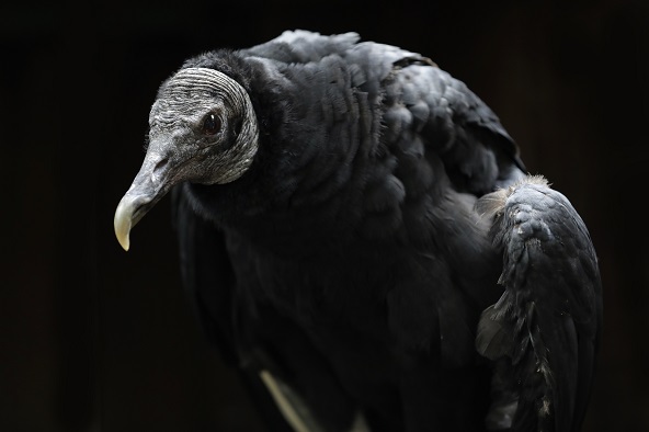 Carlos the American black vulture is the brother of Jose. Both siblings are on daily medication to manage their arthritis but are otherwise happy and healthy ruling the higher perches in the retirement aviary.
