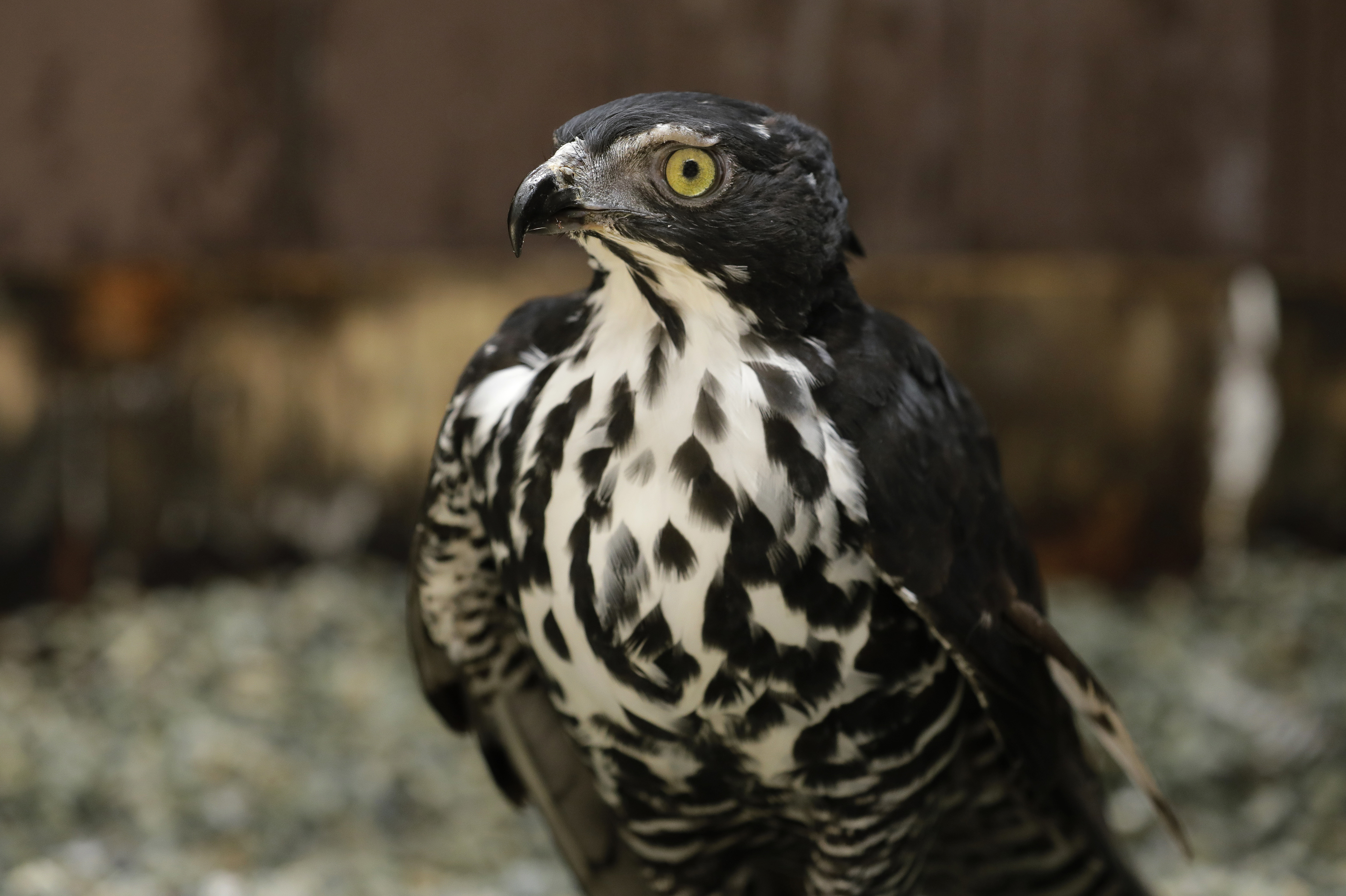 Sydney the 31-year-old Blyth’s hawk eagle is functionally blind from severe cataracts. Despite this, he is comfortable roaming the lower perches of the retirement aviary.