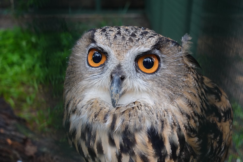 Max the Eurasian eagle-owl was hatched in 2010. While a younger bird in comparison to the rest of her peers in the aviary, she is undergoing rehabilitation for scoliosis and uses the space in the aviary to regain her strength to walk, run and fly.