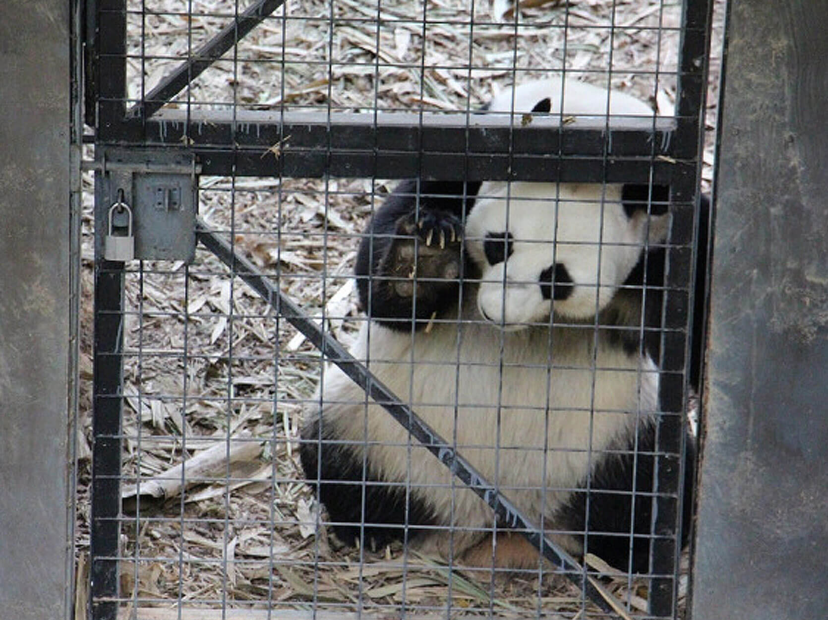 LEFT: Jia Jia looking out for Kai Kai on the other side of the crossing gate. Female giant pandas only have a window of 24 to 36 hours to get pregnant, which makes reproduction for this black-and-white icon very difficult.