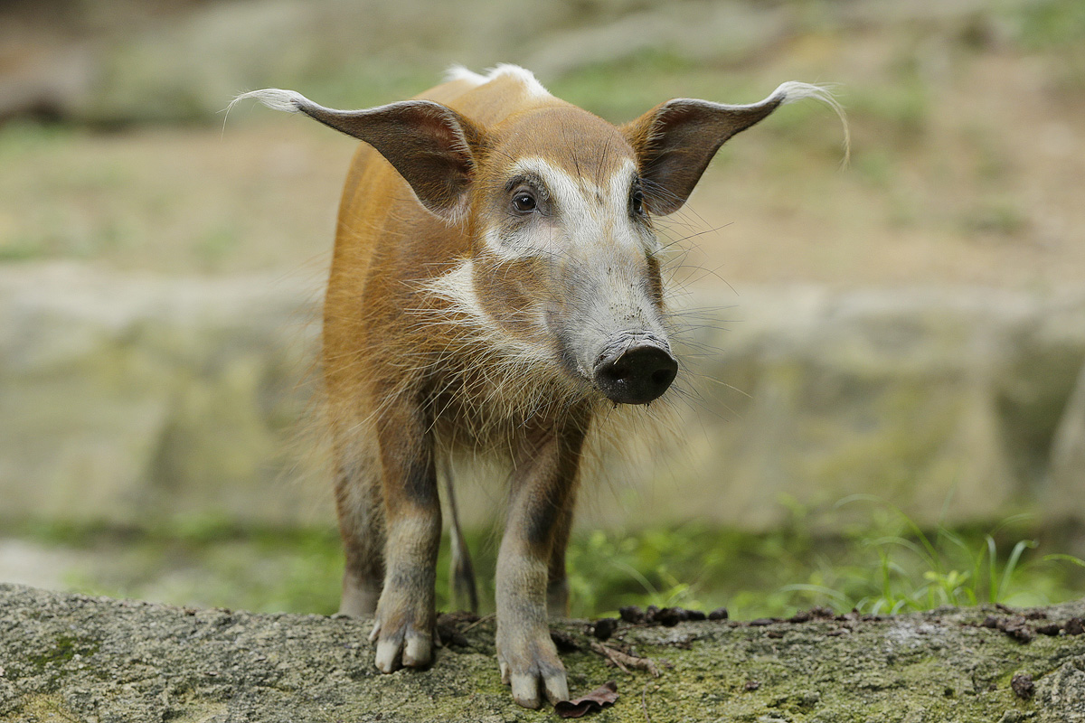 The Red River Hog is also known as the Bush Pig, another member of the wild pig family with roots in Africa. Come see them at Singapore Zoo!
