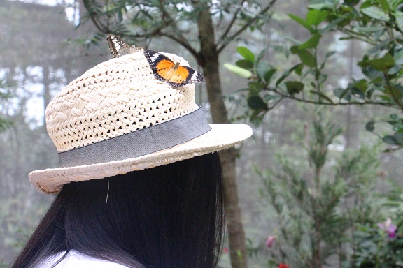 Butterflies taking a rest on a visitor’s hat. While butterflies may land on guests, visitors are encouraged not to reach out and touch them as improper handling may damage their wings.