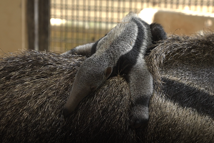 Over at River Wonders, the Giant Anteater pup similarly latches onto the back of mum, Beanie. As a means of protection from predators in the wild, the pup’s black and white band aligns with the pattern on its mum serving as a camouflage to keep itself safe. Anteaters are classified as vulnerable under the IUCN Red List of Threatened Species.