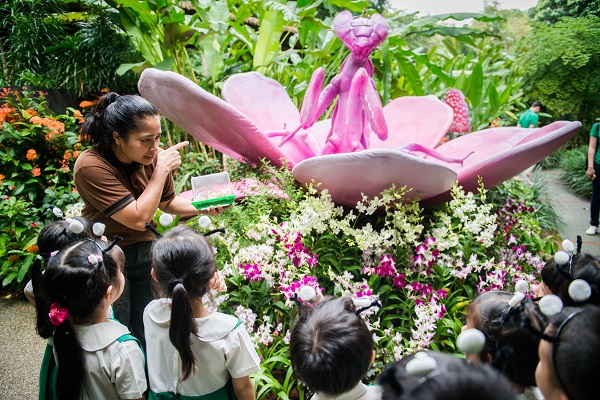 Image 5: Zeneth Begum, Head Keeper of Invertebrates, Wildlife Reserves Singapore, points out a supersized 3D model of an orchid mantis to children from Kinderland. Have a real encounter with an orchid mantis at Singapore Zoo this upcoming holiday season. Keepers are waiting to introduce guests to a plethora of invertebrates, including the orchid mantis, Madagascan hissing cockroach and jungle nymph. Activities happen every weekend from every weekend from 18 Nov – 31 Dec 2017, and on Christmas.