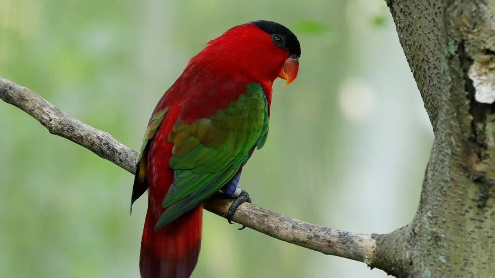The lory announces its presence with squeaky sounds as well as distinctive whistles and screeches like a bird of prey.