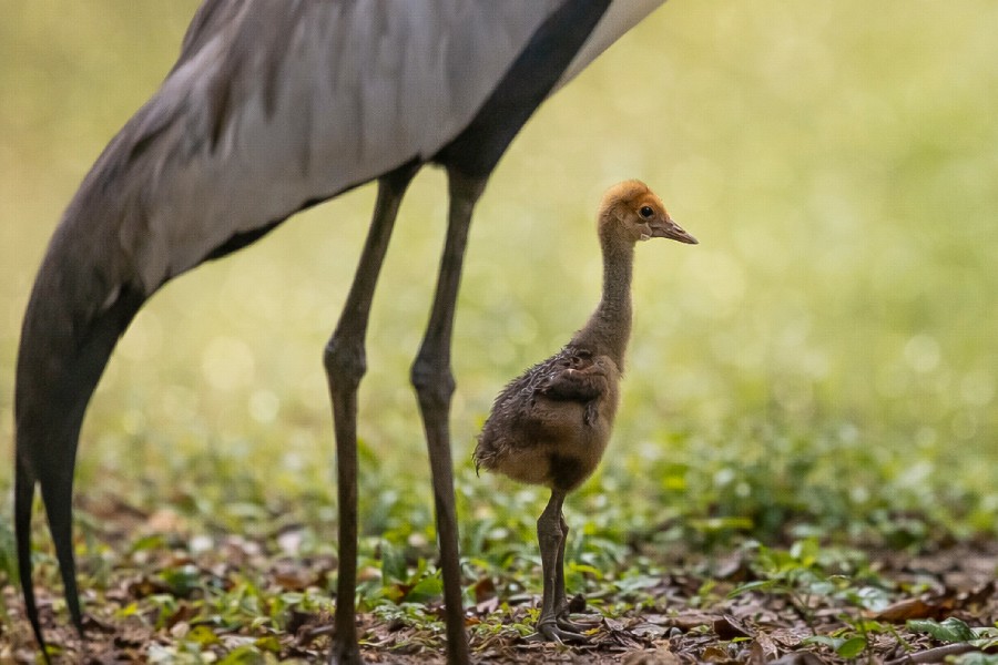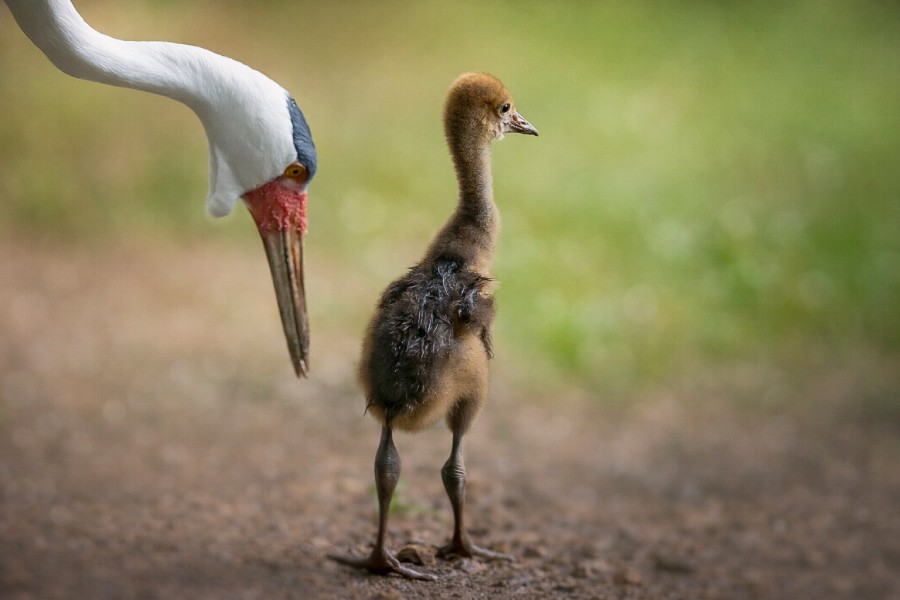 The three-month-old chick, weighing just over 2kg, is closely bonded to its mother. When fully grown, wattled cranes are the second-largest crane species in the world, typically weighing 6kg to 9kg.