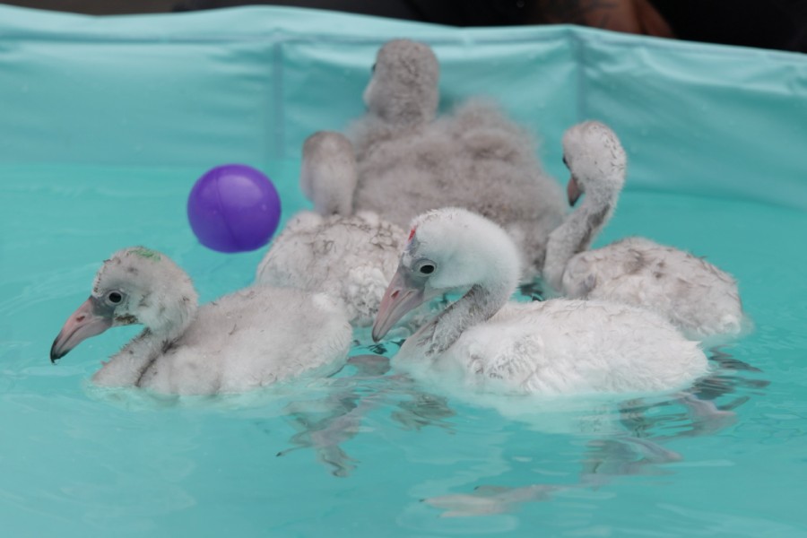 This year, seven American flamingos and fifteen greater flamingos were hand-raised at the Avian Breeding and Research Centre.