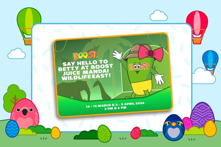 Meet Betty in person! Wave hello, snap photos, and enjoy a fun Easter moment together. Snap, share and tag @boostjuice_sg during all the fun this season!