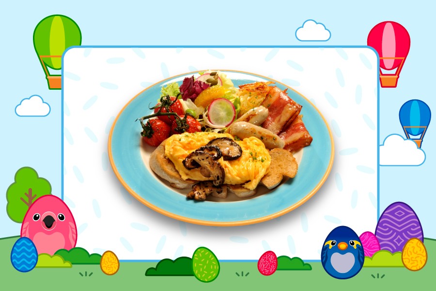 Enjoy a hearty Sunrise Easter Platter at Crimson Restaurant — perfect for refuelling during your Easter eggs-venture!