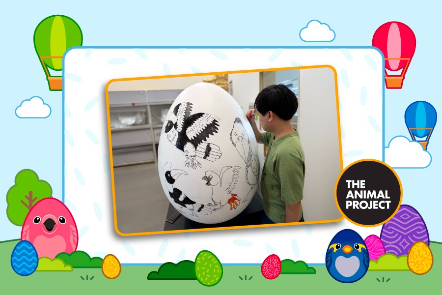 This Easter, discover larger-than-life eggs transformed into meaningful artworks — illustrated by artists with special needs from The Animal Project, featuring bird species found in our park!