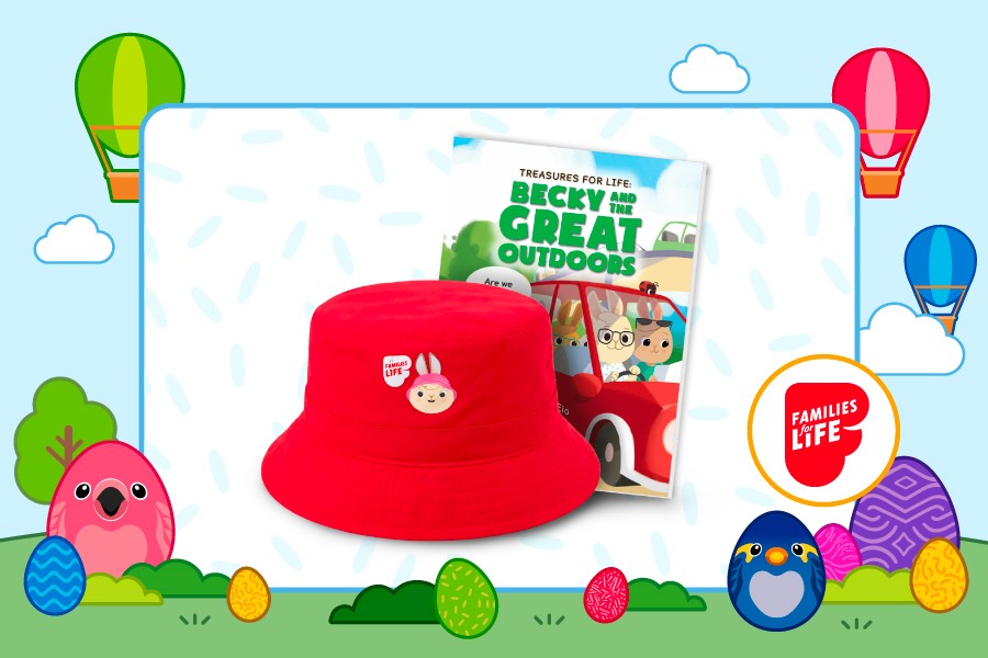 Stand a chance to bring home either 'Treasures of Life' storybook — a heartwarming read celebrating the family values of Love, Care & Concern, Commitment and Respect — or a cute Becky Bunny bucket hat from Families for Life.