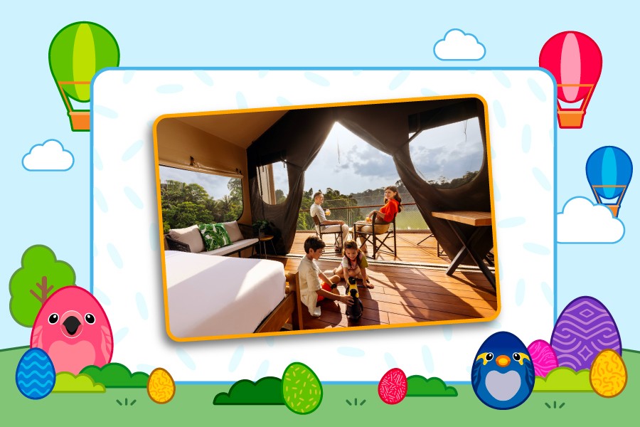 For the Easter Egg Hunt in the Family Retreat, Family Rainforest, or Family Sanctuary rooms at Mandai Rainforest Resort during the Easter weekend (3–5 April), guests must present all hidden eggs at the Resort Conceirge to redeem one Gachapon token*, which entitles them to one spin at the Hot-Egg Gachapon Machine at Mandai Wildlife WEST Lawn. *While stocks last.