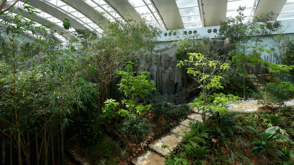 Simulating the bears’ natural habitat with lush plantings, boulders and water features, the state-of-the-art biodome is also temperature- and humidity-controlled to ensure the pandas’ comfort.