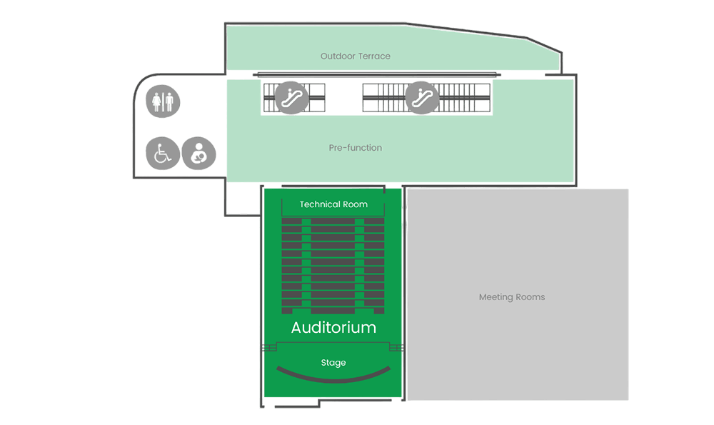 With tiered seating, and a spacious stage, this venue is ideal for conferences, presentations, and performances. Paired with a pre-function area for networking, it ensures a seamless experience for all attendees.